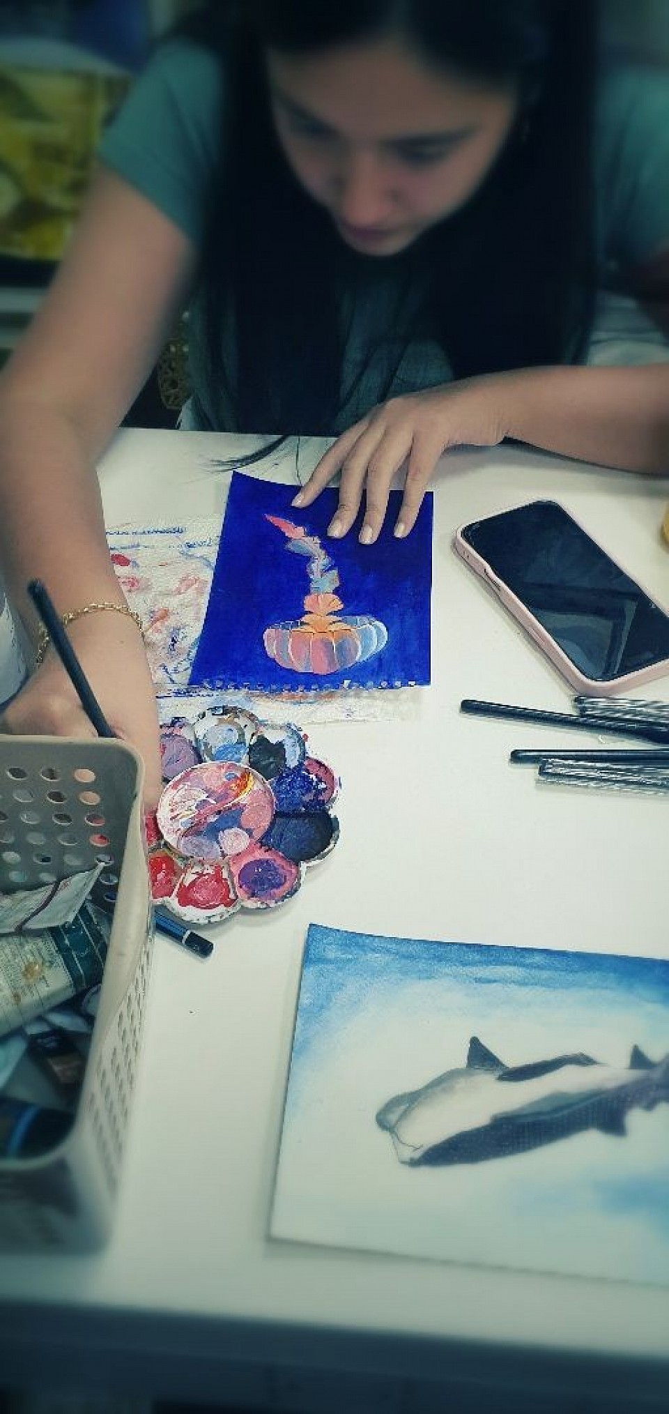 Andie, working in watercolor.